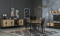 | Yemek Odası | 1 Adet Konsol ve Aynası, 1 Adet Yemek Masası, 6 Adet Sandalye’den oluşmaktadır. TV Ünitesi opsiyonel olarak satışa sunulmuştur. |