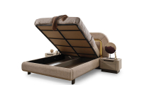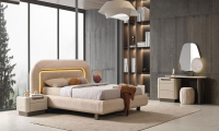 | Karyola | 160*200 ölçülerinde baza fonksiyonu bulunmaktadır. Suntalam malzeme üzerine döşenen kaliteli kumaş ile üretilmiş olup, başlık kısmında temizliği kolay, silinebilir kumaş tercih edilmiştir. İsteğe göre başlık kumaşı değişebilir. Led Aydınlatma bulunmaktadır. |