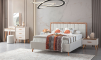 | Karyola | 160*200 ölçülerinde baza fonksiyonu bulunmaktadır. Suntalam malzeme üzerine döşenen kaliteli kumaş ile üretilmiş olup, başlık kısmında temizliği kolay, silinebilir kumaş tercih edilmiştir. İsteğe göre başlık kumaşı değişebilir. Led Aydınlatma bulunmaktadır. |