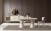 | Yemek Odası | 1 Adet Konsol ve Aynası, 1 Adet Yemek Masası, 6 Adet Sandalye’den oluşmaktadır. TV Ünitesi opsiyonel olarak satışa sunulmuştur. |