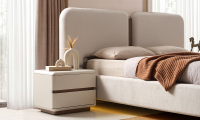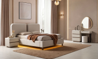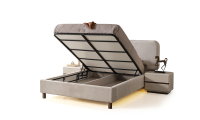 | Karyola | 160*200 ölçülerinde baza fonksiyonu bulunmaktadır. Suntalam malzeme üzerine döşenen kaliteli kumaş ile üretilmiş olup, başlık kısmında temizliği kolay, silinebilir kumaş tercih edilmiştir. İsteğe göre başlık kumaşı değişebilir. Led Aydınlatma bulunmaktadır. |